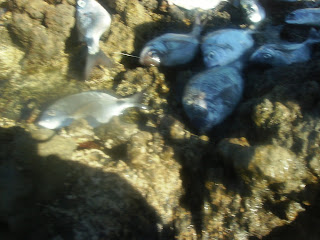 Boas malta, há já algum tempo que não ia ao pesqueiro do mudo, desta vez resolvi ir tentar tirar uns sargos por lá ,o mar estava com um toque porreiro fiz um pouco de engodo e vá de pescar ,comecei logo sentindo umas pequenas picadelas logo pensei já cá andam as bogas, mas pôs-me observando bem as aguas onde vi um cardume de sarguinhos que pareciam piranhas ratando a minhas iscadas, até que fiquei bem contente ao estas medalhas devorando o engodo e iscadas quer dizer que temos sargos para futuras pescas:))))...